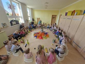 Dazu brachte jedes Kind einen schönen Frühblüher mit. In einem großen Morgenkreis versammelten sich alle voller Vorfreude, um gemeinsam den Frühling zu begrüßen.