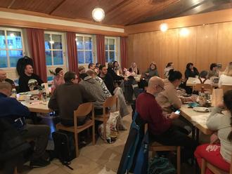 Ja und dann war wiederum Überraschung angesagt. Zu ihrem Geburtstag bewirtete eine Ukrainerin alle Anwesenden. Mit einem vereinten „Happy birthday to you“ hielt das gemeinsame Singen Einzug ins Pfarrheim und dies für den Rest des Nachmittags. Ein Gast brachte seine Gitarre mit und so konnten unsere Mitmenschen für kurze Zeit ihre Sorgen vergessen. In einer heiteren und gelösten Stimmung gab es einen angeregten Austausch.