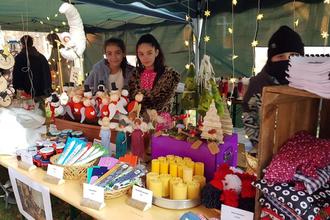 Bereits zwei Wochen zuvor konnte das Gymnasium Ottweiler mit seinem Verkaufsstand auf dem Ottweiler Weihnachtsmarkt über 1800 € zugunsten des Are-Gymnasiums einnehmen. Angespornt von diesem großartigen Erfolg gaben auch die Kinder der FGTS alles und rege Betriebsamkeit erfüllte das Gebäude der Ganztagsschule: Die einen bastelten Schneemänner aus Styroporkugeln, die anderen Rentier-Anhänger aus kleinen Holzscheiben. Hier wurden mit viel Geduld Woll-Wichtel gewickelt, dort Anhänger aus Epoxidharz gegossen. Aus der Küche drang der Duft von Zimtwaffeln, Vanillekipferl oder selbstgemachter Marmelade, aus dem Bastelzimmer war das Rattern der Nähmaschine zu hören: Mit ruhiger Hand wurden hier Kirschkernkissen, Stoff - Lesezeichen und Mäppchen genäht.