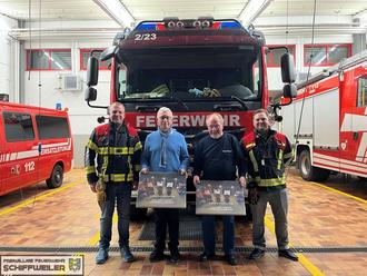 v.l.n.r. Jens Sieslack (stellv. Löschbezirksführer), Rainer Schach, Ewald Kolling, Benedikt Recktenwald (Löschbezirksführer)