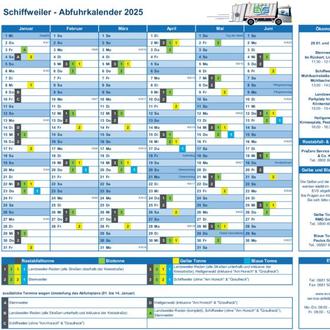 In den ersten beiden Kalenderwochen 2025 bleiben die Abfuhrtermine für die Bio- und Restabfalltonne in Schiffweiler unverändert. Aufgrund des Neujahrsfeiertages verschiebt sich die Abfuhr in der ersten Woche, beginnend ab Mittwoch, um jeweils einen Tag nach hinten.