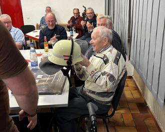 Zuletzt stand noch eine „ganz besondere“ Ehrung auf dem Programmpunkt. Edgar Schmitt, Mitglied der Ehrenabteilung des Löschbezirk Heiligenwald, wurde dieses Jahr für 75-jährige Mitgliedschaft in der Feuerwehr ausgezeichnet. Die Ehrung erfolgte bereits an dem diesjährigen Ehrungsabend der Feuerwehr der Gemeinde Schiffweiler. Kreisbrandinspekteur Michael Sieslack ließ es sich nicht nehmen, ein paar Worte über diese Ehrung zu verlieren: