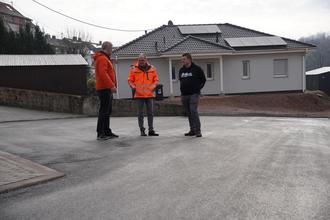Bürgermeister Markus Fuchs, Bauamtsleiter Thorsten Siebraße und Ortsvorsteher Mathias Mauermann machten sich ein Bild von der frisch sanierten Straße. Das Kostenvolumen für diesen Sanierungsbereich betrug rund 175.000 Euro.