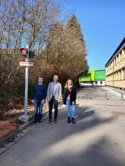 Vor Ort haben sich auch die Leiterin des Kinderhauses, der Schulleiter der Grundschule sowie Bürgermeister Cedric Jochum ein Bild von der neuen Schrankenanlage gemacht. Die Anlage soll künftig dazu beitragen, den Durchgangsverkehr zu reduzieren und den Bereich rund um Schule und Kinderhaus für Kinder, Eltern und Beschäftigte sicherer zu machen.