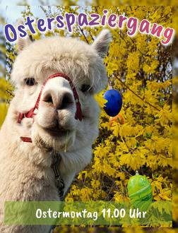 Osterspaziergang am Striet mit den Alpakas, Andacht und Ostereiersuche