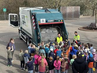 Da der Papa von Peter aus der Klasse 2a bei PreZero arbeitet, hatten alle Kinder die Möglichkeit, sich selbst einmal in ein Müllauto zu setzen und zu erfahren, wie es bedient wird und wie viel Müll damit abtransportiert werden kann.