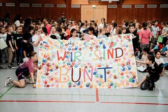 Nach kurzen Begrüßungsreden der einzelnen Personen führten die Schüler zum Abschluss den Tanz „Wir sind bunt“ auf.