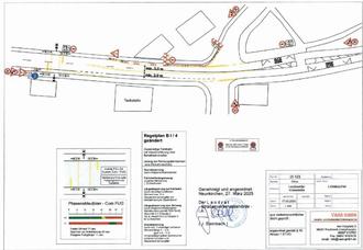 Im Zuge dieser Baumaßnahme ist eine Sperrung des Gehwegs erforderlich. Für die Sicherheit der Fußgänger wird eine Fußgängerampel eingerichtet, um das sichere Überqueren der Straße zu gewährleisten.