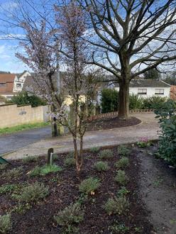 Für all diese Hilfe zeigen sich die Geflüchteten sehr dankbar und möchten sich auch ihrerseits gerne revanchieren und etwas „für die Kirche machen“, wie sie sich immer ausdrücken. Im Focus steht dabei das Gelände um Pfarrheim und Pfarrhaus, das bis vor gut einem Jahr mit Gestrüpp und Brombeerranken überwuchert war. Schon im vergangenen Jahr wurde dieses Gelände in einem ersten Arbeitseinsatz von gröbsten Gestrüpp befreit, die Beete im Eingangsbereich kultivierfähig gemacht und mit insektenfreundlichem Lavendel neu bepflanzt.