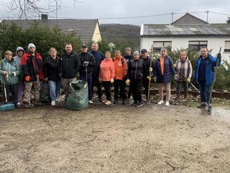 Zur Belohnung wartete auf die Mitwirkenden, die stolz auf ihren gelungenen Einsatz sind, ein gemütliches Beisammensein mit einem von Franziska Carrouée zubereiteten schmackhaften Mittagessen. Ein großes Dankeschön an alle Helferinnen und Helfer, an Jörg Wolf für die fachliche Unterstützung und besonders an Carola Holzer, die den gesamten Einsatz geplant und organisiert hat. Diese Aktion ist auch ein Beitrag zur Integration der Geflüchteten.