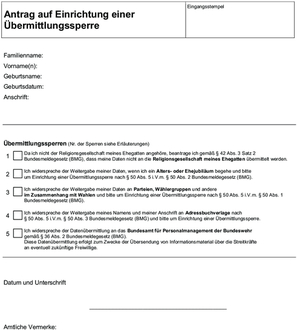 Gemäß § 50 Abs. 5 BMG hat die betroffene Person das Recht, der Übermittlung ihrer Daten zu widersprechen.