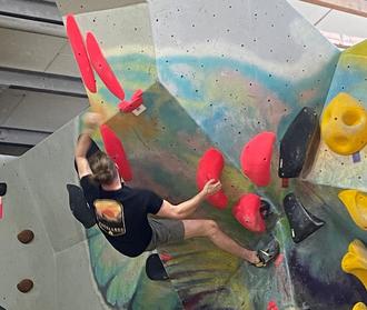 Amare Weisgerber bei den saarländischen Schulmeisterschaften im Klettern und Bouldern 2023.