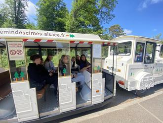 Nach dem Besuch in der Brezelfabrik sind wir mit dem Bus weiter zum Baumwipfelpfad in Drachenbronn gefahren. Die Fahrt nach oben war ganz entspannt, wir mussten nur kurz auf den Shuttle warten, der wie ein kleiner Zug aussah.