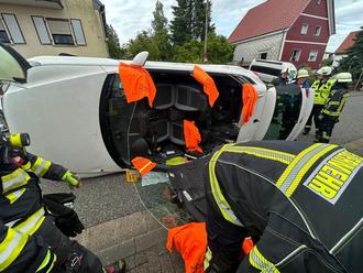 Beim Eintreffen der ersten Einsatzkräfte bot sich ein dramatisches Bild: Ein Pkw lag auf der Seite, die Fahrerin war im Fahrzeug eingeschlossen, jedoch glücklicherweise ansprechbar. Entgegen der Erstmeldung war sie nicht eingeklemmt, sodass augenscheinlich keine akute Lebensgefahr bestand. Dennoch entschieden sich Feuerwehr und Rettungsdienst aufgrund des unklaren Verletzungsmusters für eine sogenannte schonende Rettung.