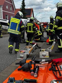 Mit Hilfe von hydraulischem Rettungsgerät und der Säbelsäge wurde das Fahrzeugdach entfernt. So konnte die Patientin achsengerecht und so sanft wie möglich aus dem Auto befreit und anschließend dem Rettungsdienst übergeben werden. Die Feuerwehr stellte im Anschluss das Fahrzeug wieder auf die Räder, sicherte es gegen Wegrollen und reinigte die Fahrbahn, um weitere Gefahren für den Verkehr auszuschließen.
