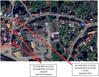 Die Sperrung tritt am 14. Juni 2025 um 15:00 Uhr in Kraft und bleibt bis zum Ende der Veranstaltung bestehen.