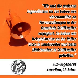 Insgesamt war unsere Zeit im Juz-Jugendrat von vielen Herausforderungen geprägt. Das Jugendzentrum war zweimal von Schließungen und Einbruchversuchen betroffen. Mehrere Monate konnten wir nicht in den Ort, der für uns eine so wichtige Rolle in unserer Freizeit spielt. Umso wichtiger war es uns öffentlichkeitswirksam darüber zu berichten und aktiv zu werden. Wir und die anderen Jugendlichen im Juz haben uns ehrenamtlich an Veranstaltungen in der Gemeinde Schiffweiler engagiert. So haben wir beispielsweise an der Roller Disco in Landsweiler und beim Mädchenfest in Schiffweiler geholfen. Wir haben Interviews im SR gegeben, Artikel verfasst und unsere Arbeit im Gemeinderat Schiffweiler vorgestellt.