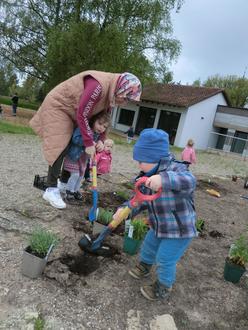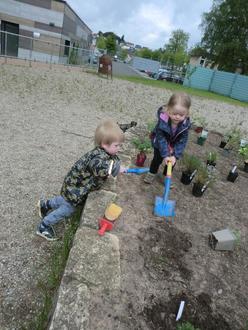 …… hinaus ins Freie! Pflanzaktion in der Kita Stennweiler