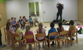 Am 14. und 15.05.2024 besuchte die Feuerwehr Landsweiler Reden die Vorschulkinder im Kinderhaus im Wiesengrund. Christine Schäfer und Pascal Petry trafen sich mit den Kindern gemeinsam in der Turnhalle. Zu Beginn wurde erstmal geklärt, was denn die genaue Aufgabe der Feuerwehr sei. Und wie man diese überhaupt verständigt.