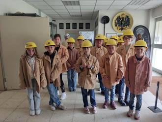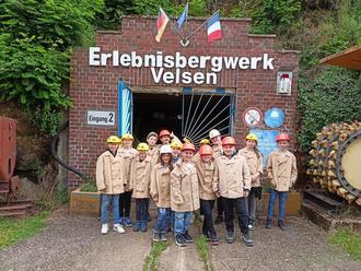 Am Mittwoch, dem 05.06.24, besichtigten beide 4. Klassen der Grundschule Heiligenwald zusammen mit ihren Klassenlehrerinnen das Erlebnisbergwerk in Velsen, bei Völklingen. Dort angekommen wurden alle in der Kleiderkammer mit Bergmannsjacke und Helm eingekleidet. Nach einer schnellen Runde mit einem kleinen Zug ging es unter Tage. Neben vielen anderen Begriffen aus der Bergmannssprache lernten die Kinder, dass es einfahren heißt, obwohl es doch zu Fuß weiter ging.