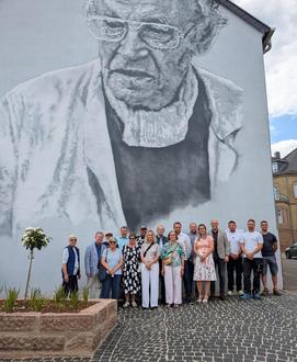 Mit einer symbolischen Übergabe wurde am Montag, 16. Juni, der neu gestaltete Vorplatz am Walter-Bernstein-Giebel offiziell der Öffentlichkeit übergeben. Damit erhält das beeindruckende Porträt von Walter Bernstein – der am 17. Juni seinen 124. Geburtstag gefeiert hätte –, geschaffen vom international bekannten Street-Art-Künstler Hendrik Beikirch, einen würdigen Rahmen. Zugleich entsteht für die Gemeinde Schiffweiler ein neuer Ort der Erinnerung und Begegnung.