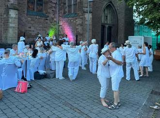 Trotz wechselhafter Wettervorhersagen fand das diesjährige „Dîner en blanc“ wie geplant vor der katholischen Pfarrkirche St. Martin statt - und wurde zu einem vollen Erfolg.