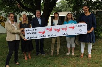 Hubert Maschlanka, Schulleiter der Dr.-Walter-Bruch-Schule in St. Wendel, freute sich sehr zusammen mit den Lehrerinnen Carmen Spies und Kerstin Könicke eine beachtliche Spendensumme in Höhe von 15.000 € an das Kinderhilfswerk UNICEF für Kinder in der Ukraine überreichen zu dürfen. Bozena Pawlowska und Rita Haßdenteufel, vom Team St. Wendel der UNICEF-Arbeitsgruppe Saarbrücken, kamen begeistert an den kaufmännischen Standort des Berufsbildungszentrums, um den Scheck symbolisch in Empfang zu nehmen.