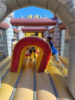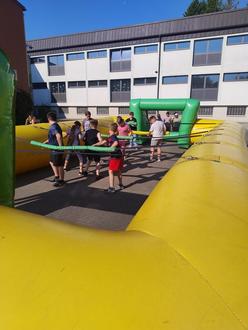 Den krönenden Abschluss der sportlichen Tage bildeten zwei Hüpfburgen und ein Human Table Soccer, organisiert vom Förderverein der Schule. Hier konnten die Kinder nach Herzenslust herumtoben und sich austoben. Für das leibliche Wohl sorgte der Förderverein ebenfalls mit reichlich Essen und Trinken, sodass die Veranstaltung rundum gelungen war.