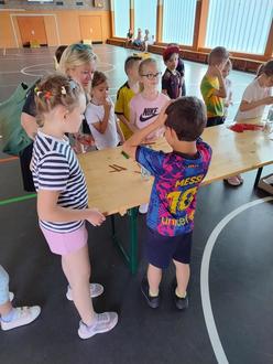 Der Auftakt erfolgte am vergangenen Dienstag mit dem Fit4Future Bewegungstag. An verschiedenen Stationen konnten die Kinder ihre Schnelligkeit, ihre Wurftechnik, ihre Geschicklichkeit und ihr Wissen unter Beweis stellen. Die Begeisterung war groß, nicht zuletzt auch bei Staatssekretärin Jessica Heide, die an diesem Tag die Schule besuchte und sich von den sportlichen Leistungen der Schüler beeindruckt zeigte.