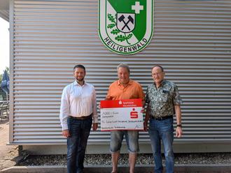 Bürgermeister Markus Fuchs und Beratungscenterleiter der Sparkasse Maik Spreyer haben dem Tennisclub grün-weiß Heiligenwald eine großzügige Spende überreicht. Der Betrag von 1.000 EURO ist speziell für die dringend benötigte Sanierung der Toilettenanlage im Tennisheim vorgesehen.