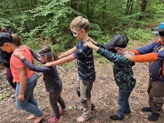 Der zweite Tag stand ganz im Zeichen von Wahrnehmung und Achtsamkeit. Unser „Waldtier des Tages“ war der Maulwurf. Hier lernten die Kinder, ihre Sinne gezielt einzusetzen – mit verschiedenen Spielen und Übungen schärften wir unser Gehör, unseren Tastsinn und unsere Orientierung im Gelände. Diese spielerische Schulung der Wahrnehmung
