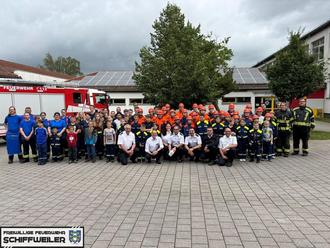 Am Samstag, dem 06.07.2024, fand die diesjährige Jahreshauptversammlung und -übung der Jugendfeuerwehren und Kinderfeuerwehr der Gemeinde Schiffweiler statt. Nikola Holzer konnte um 14 Uhr 42 Jugendliche und 19 Kinder im Gerätehaus des Löschbezirkes Nord zur Jahreshauptversammlung begrüßen. Auch begrüßen konnte er einige Ehrengäste, darunter die stellvertretende Landesjugendbeauftragte Julia Schäfer, den Kreisjugendbeauftragten Markus Bernhardt, den Wehrführer der Gemeinde Schiffweiler Christian Kleis sowie die Löschbezirksführungen der Gemeinde Schiffweiler. Auf der Tagesordnung standen neben den Grußworten der Ehrengäste und dem Jahresbericht des letzten Jahres die Neuwahlen des Gemeindejugendgruppensprechers und seines Stellvertreters. Zum Gemeindejugendgruppensprecher wurde der ehemalige Stellvertreter Philip Rumetsch gewählt, zu seinem Stellvertreter Johannes Hoffmann. Neu in diesem Jahr waren die Wahlen zweier Kindergruppensprecherinnen. Hier wurden Johanna und Juliane Werry mit Stimmengleichheit von den Mitgliedern der Kinderfeuerwehr gewählt. Im Anschluss an die Versammlung wurden alle Kinder und Jugendliche zur Jahreshauptübung alarmiert. Übungsszenario war ein Brand der Grundschule in mehreren Gebäudeteilen. Die Jugendfeuerwehr der Löschbezirke Landsweiler und Nord konnten ihr Können bei der Personenrettung im Innenangriff beweisen. Die Jugendfeuerwehr Heiligenwald demonstrierte auf dem Schulhof den Ablauf einer technischen Rettung einer Person unter einem IBC Behälter mittels Hebekissen. Alle drei Jugendfeuerwehren bekämpften zusätzlich zusammen mit der Kinderfeuerwehr das Feuer des Gebäudekomplexes über mehrere Rohre im Außenangriff. Bürgermeister Fuchs, der damit die letzte Jahreshauptübung in seiner Amtszeit besuchte, bedankte sich im Anschluss an die Übung bei allen Kindern und Jugendlichen. Die Darbietung habe gezeigt, dass die Betreuer in den letzten Jahren gute Arbeit geleistet haben, so Fuchs. Weiterhin führte er an, dass er stolz auf die komplette Gruppe sei und dass die Kinder- und Jugendfeuerwehr ein wichtiger Teil der Freiwilligen Feuerwehr sei. Auch Kreisbrandinspektor Michael Sieslack konnte sich ein Bild von dem Können der Kinder- und Jugendfeuerwehr machen. Er bedankte sich bei allen Betreuern für die unermüdliche Arbeit in der Ausbildung aber besonders auch bei allen Kindern und Jugendlichen dafür, dass sie ihre Freizeit für solch ein wichtiges Hobby nutzen. Unser Dank gilt der Feuerwehr Merchweiler für die Unterstützung bei der Fahrzeuglogistik. Ganz besonderen Dank für die finanzielle Unterstützung möchten wir an Benjamin Kiehn, Stefan Schäfer und Markus Fuchs richten.