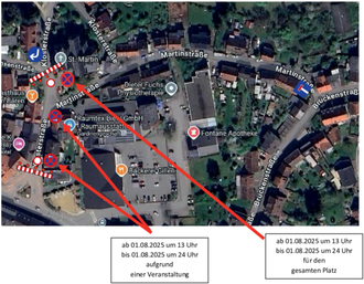 Die Sperrung tritt am 08. August 2025 ab 13:00 Uhr in Kraft und gilt bis Mitternacht – nach vollständigem Abbau der Veranstaltungseinrichtungen.