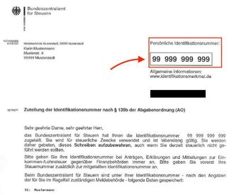 Wir senden Ihnen Ihre Steuer-ID per Post an Ihre aktuelle Meldeanschrift.
