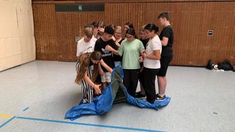 Die Klasse wurde dabei von den Lehrkräften Frau Peifer, Herrn Abel und Herrn Meyer betreut. Auch sie nahmen aktiv an den Kooperationsübungen teil und konnten neue Erkenntnisse gewinnen. Es wurde deutlich, wie entscheidend klare Absprachen und eine gemeinsame Strategie für das erfolgreiche Bewältigen von gemeinsamen Aufgaben sind.