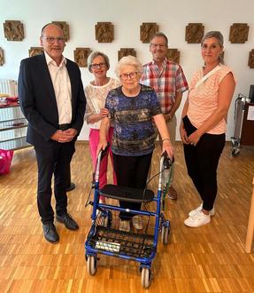 Frau Gisela Rick wurde am 31. August 100 Jahre alt. Bürgermeister Markus Fuchs und Ortsvorsteherin Sabrina Zewe überbrachten die besten Glückwünsche.