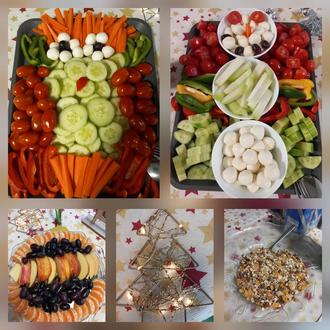 Viele fleißige Helfer*innen bauten das Buffet auf (und räumten im Anschluss auch wieder auf), belegten frische Brote, richteten her, spülten massenweise Geschirr, schnippelten Obst und Gemüse und legten damit liebevoll Figuren wie Schneemann, Eule, Weihnachtskugel und Tannenbaum. Dazu gab es gekochte Eier, Müsli und warmen Kinderpunsch.