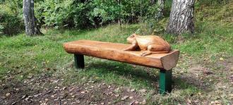 Auch der Platz direkt am Rombachweiher wurde aufgewertet. Dort steht seit kurzem eine neue Holzbank, die mit einem Frosch, geschnitzt von Markus Wittling und aufgestellt durch den Bauhof der Gemeinde, nun zum Verweilen einlädt. Das Holz für diese Bank stellte der Saarforst kostenfrei zur Verfügung.