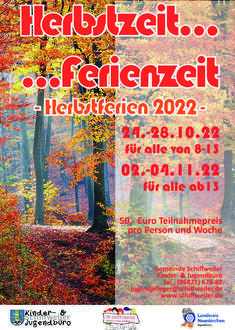 Auch in diesem Jahr bietet das Kinder- & Jugendbüro der Gemeinde Schiffweiler in Kooperation mit dem Förderverein Kinder „Die Rasselbande“ Schiffweiler und unterstützt durch den Landkreis Neunkirchen wieder ein Herbstferienprogramm für alle von 8 bis 13 Jahren an.
