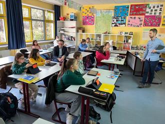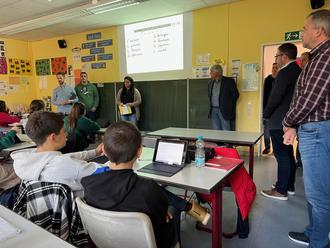 Schulleiter Frank Brück und Oberstufenkoordinator Christian Meyer führten die hierzu eingeladenen Gäste durch die Schule, sodass diese sich ein Bild vom Einsatz der digitalen Ausstattung unter pädagogischen Gesichtspunkten machen und erleben konnten, wie die digitalen Medien den analogen Unterricht unterstützen und ergänzen. Sowohl Landrat als auch Schulleiter Brück zeigten sich sehr angetan von den Leistungen der Schul-IT und der praktischen Umsetzung durch die Lehrkräfte.
