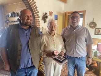 Frau Mathilde Neurohr wurde am 6. Oktober 99 Jahre alt. Der Ortsvorsteher Dominik Dietz und sein Stellvertreter Michael Schabbach überbrachten auch im Namen des Bürgermeisters die besten Glückwünsche.