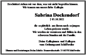 Wir werden sie vermissen und fühlen in den schweren Stunden mit der Familie.