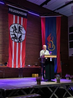Unter den Ehrengästen konnte der Bürgermeister Cedric Jochum den Landesbrandinspekteur Timo Meyer, den Vertreter des Landesfeuerwehrverbandes Albert Zitt, den Vertreter des Kreisfeuerwehrverbandes Andreas Kuhn, die Wehrführung Christian Kleis und Stefan Schabbach begrüßen.