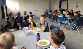 Als das Gemüse weichgekocht war, haben sie es gemixt. Im Speisesaal haben wir die Suppe gegessen. Die Suppe hat mir sehr gut geschmeckt.