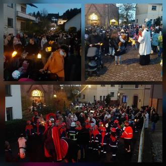 "Sankt Martin, Sankt Martin..." schallte es am 09.11.2023 durch die Straßen beim gemeinsamen St.Martinsumzug der Grundschule Landsweiler-Reden, des Kinderhauses Im Wiesengrund und des Orgateams Herz-Jesu Landsweiler-Reden. Nach einem kleinen Wortgottesdienst in der katholischen Kirche in Landsweiler-Reden zogen, angeführt von St.Martin auf dem Pferd und begleitet vom Musikverein Harmonie Schiffweiler, viele Kinder und Erwachsene bei überraschend gutem Wetter durch den Löschpfad zum alten Sportplatz unterhalb der Turnhalle. Es wurde gesungen, gelacht und viele bunte Laternen waren zu sehen. Die Kinder hatten sichtlich Spaß und zeigten stolz ihre gebastelten Werke.