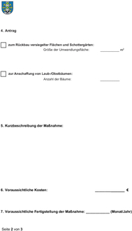 | • | Die Mindestgröße für eine Förderung umzuwandelnder Fläche auf einem Grundstück beträgt 10 m². |
