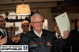 Für langjährige Mitgliedschaften ehrten Bürgermeister Markus Fuchs und Wehrführer Christian Kleis Marcel Schumacher für 15 Jahre, Christoph Jochum für 30 Jahre und Kurt Baltes für 40 Jahre. Ab 40 Jahren Mitgliedschaft gibt es auch Ehrungen durch den Landesfeuerwehrverband, diese überreichte Horst Malter vom Kreisfeuerwehrverband in Vertretung. Abschließend wurde Martin Pukallus in die Ehrenabteilung verabschiedet.