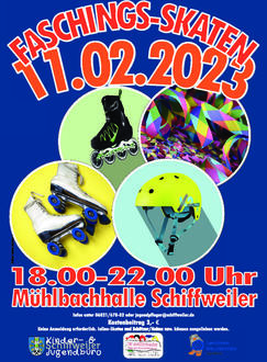 Zum ersten Mal im neuen Jahr 2023 und dann auch schon im Februar begrüßt das Kinder- und Jugendbüro der Gemeinde Schiffweiler am Samstag, 11.02.2023 alle Kinder, Jugendliche und Erwachsene in der Mühlbachhalle Schiffweiler zum Jahresauftakt beim allseits bekannten Nightskaten.