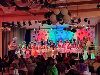 Als der Elferrat auf der Bühne seine Sitzplätze eingenommen hatte, begrüßten die Sitzungspräsidenten und Prinzenpaare die Gäste. Im Anschluss verlegte sich das närrische Volk auf eingeübte Tanzeinlagen. In Funken- und Marschtänzen sowie zahlreichen Showtänzen stellten die Vereine unter Beweis, mit wie viel Engagement und Arbeit sie das ganze Jahr auf die närrische Zeit hinarbeiten. Egal ob Minigarde, Jugendmariechen oder Juniorengarde, alle unterhielten ihr Publikum mit vollem Einsatz. Für Unterhaltung und viele Lacher sorgten die Büttenredner, die sich auch in diesem Jahr wieder einige witzige Anekdoten aus dem Leben und der Gesellschaft hatten einfallen lassen.