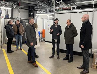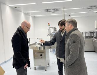 Landrat Sören Meng besuchte gemeinsam mit Schiffweilers Bürgermeister Cedric Jochum und Wirtschaftsförderer Klaus Häusler den sogenannten Pharma-Campus am Standort Nußkopf in Schiffweiler und erhielt beim Rundgang durch das Unternehmen spannende Einblicke in die Abläufe und Strukturen eines der führenden Dienstleister im Pharmabereich. Gemeinsam mit Geschäftsführer Ahmad Mansour und Betriebsleiter Thomas Engler tauschte er sich über aktuelle Entwicklungen, Herausforderungen und Zukunftsperspektiven aus.